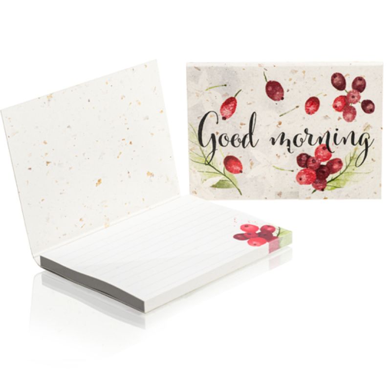 Les Post-it avec couverture à base de café constituent des cadeaux d’affaires exceptionnels qui véhiculent une image positive et consciente de votre marque. Offrir ces Post-it à vos clients, partenaires ou lors d’événements spéciaux montre non seulement votre appréciation mais aussi votre engagement envers des pratiques commerciales respectueuses de l’environnement. Ces cadeaux uniques et pratiques restent sur les bureaux de vos clients, rappelant constamment votre marque et vos valeurs écologiques.